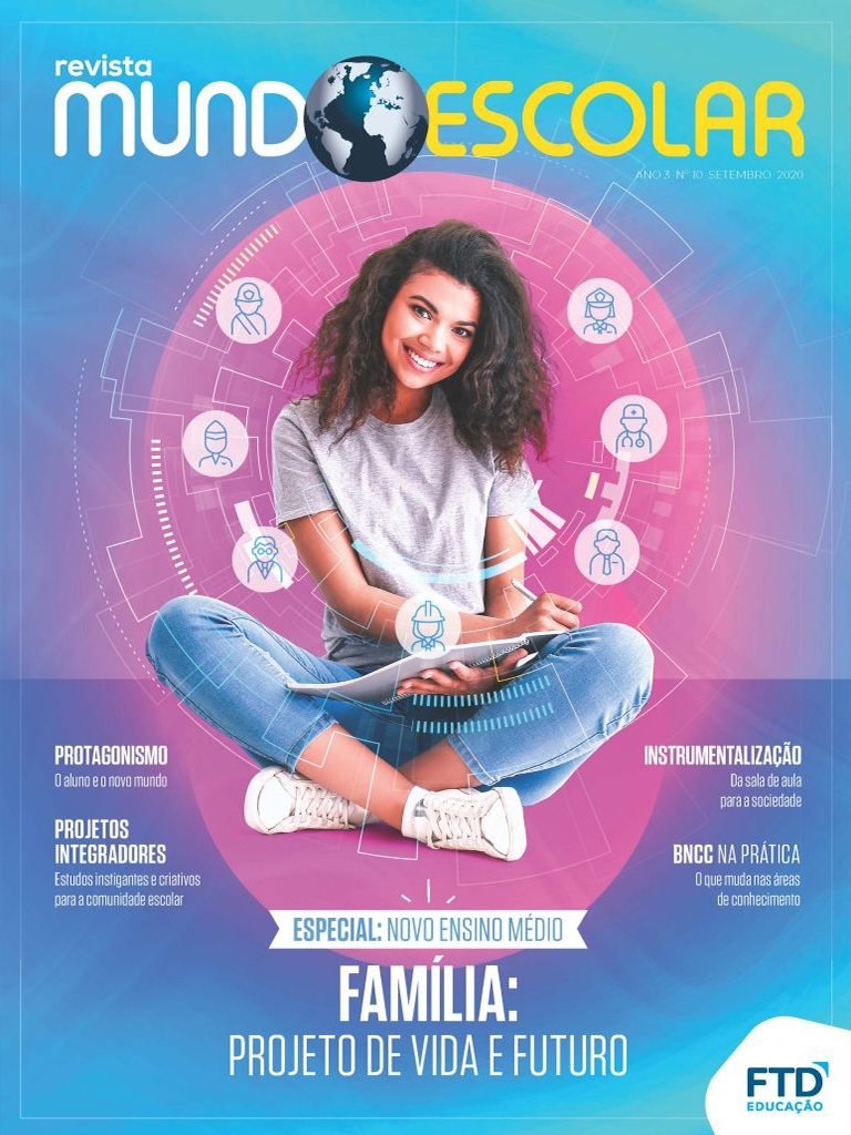 A edição nº 10 da revista Mundo Escolar traz o Especial: Novo Ensino Médio, com um conjunto de reportagens, entrevistas, personagens e boas práticas sobre esse assunto. Dentre os temas, estão: projeto de vida, instrumentalização metodológica, projetos integradores, protagonismo do estudante, a BNCC na prática e as expectativas e desafios para o gestor, o professor, o aluno, sua família e sua comunidade.